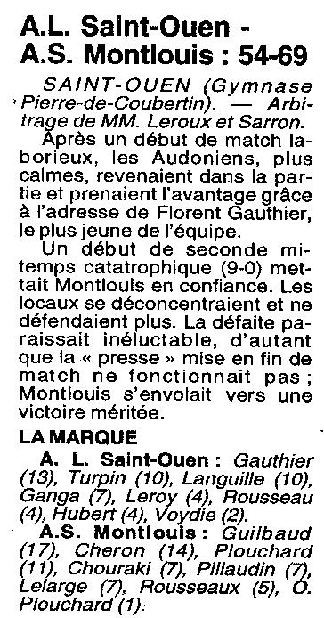 Saison 1995-1996 : En Championnat Régionale Masculine 3, AL St Ouen bat AS Montlouis