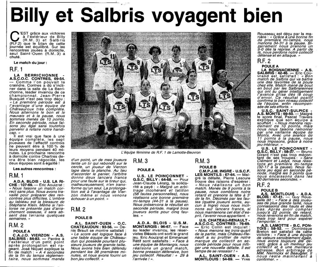 « Saison 1995-1996 : En Championnat Régionale Masculine 3, AL St Ouen bat AS Montlouis