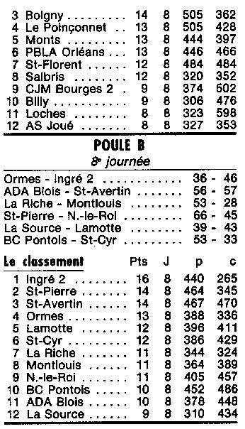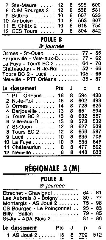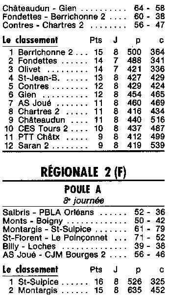 Saison 1995-1996 : Résultats et Classements après la 8ème Journée des Championnats Régionaux