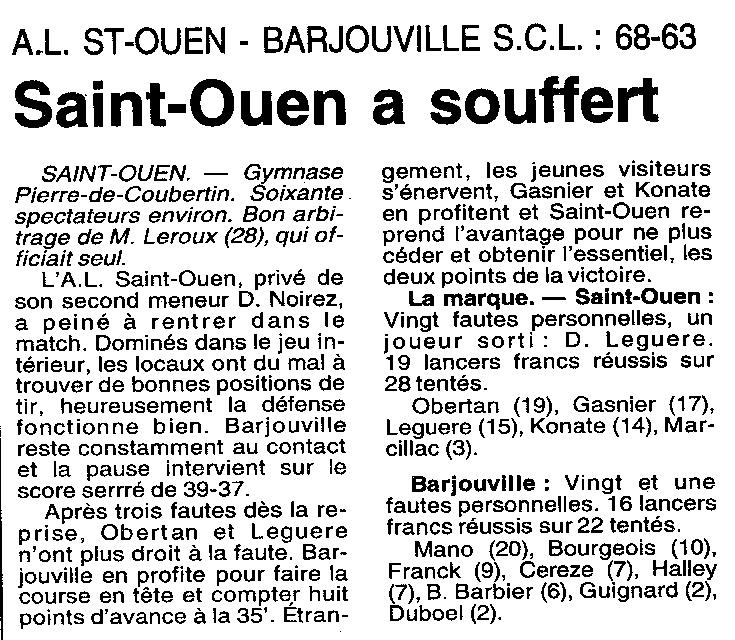 Saison 1995-1996 : En Championnat Régionale Masculine 3, St Ouen bat ABC St Jean de Braye »