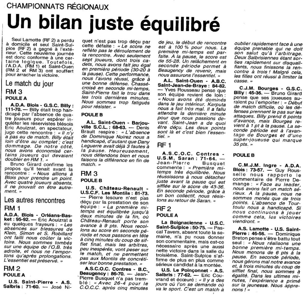 Saison 1995-1996 : Résultats de la 9ème Journée des équipes du Loir et Cher dans les Championnats Régionaux