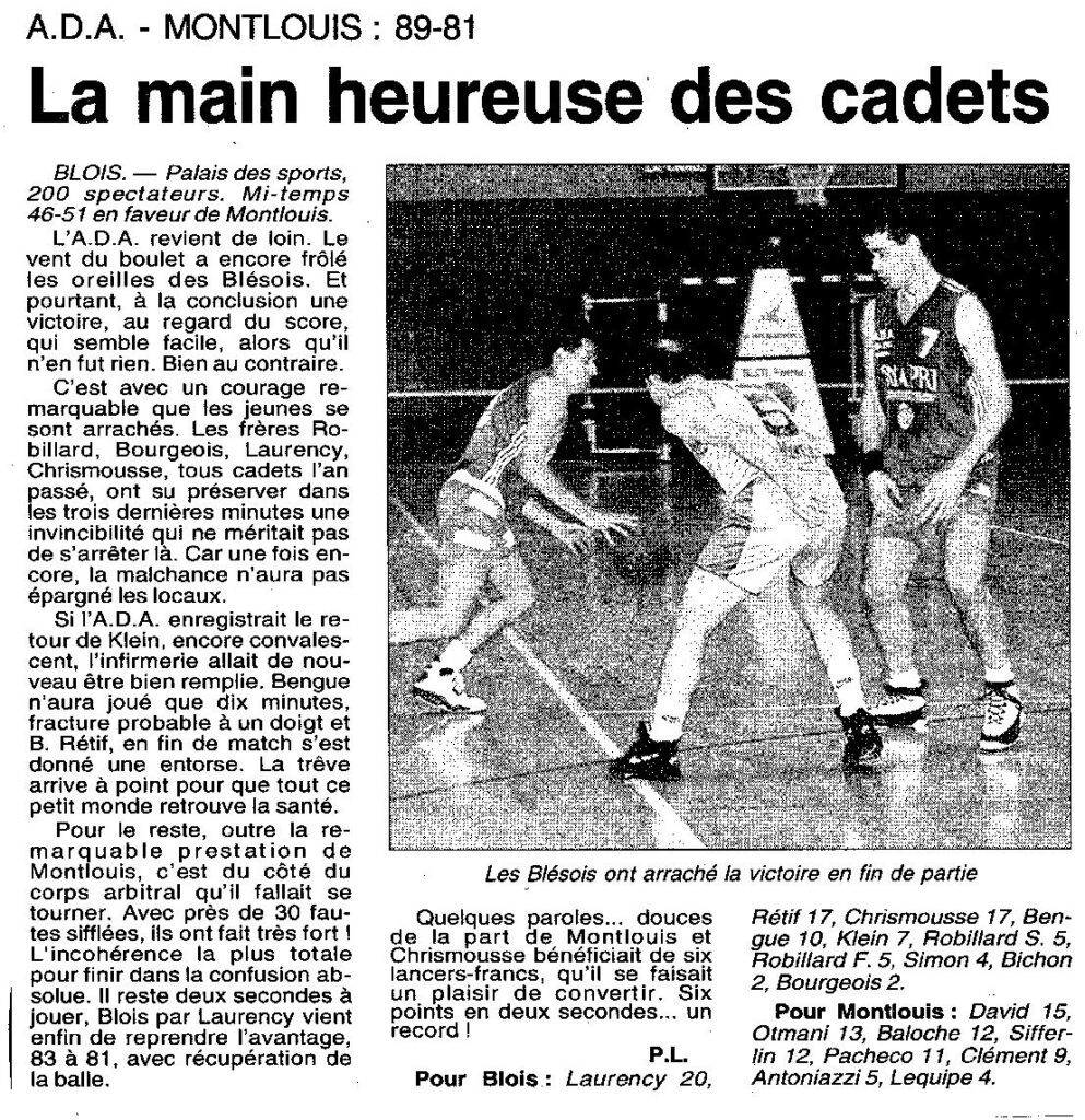 Saison 1995-1996 : En Championnat Régionale Masculine 1, l’ADA Blois bat Montlouis