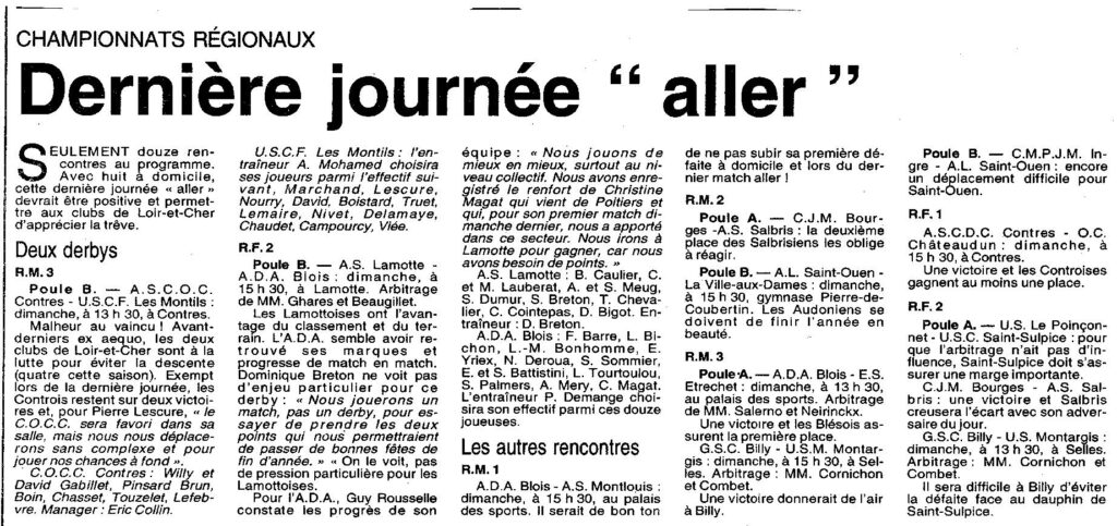 Saison 1995-1996 : Programme de la 11ème Journée des équipes du Loir et Cher dans les Championnats Régionaux