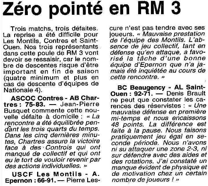 Saison 1995-1996 : Résultats de la 12ème Journée des équipes du Loir et Cher dans le Championnat Régional RM3 (B)