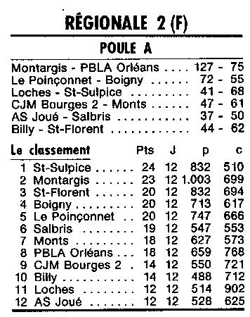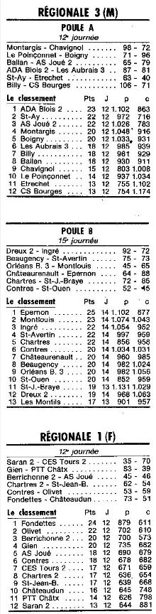 Saison 1995-1996 : Résultats et Classements après la 12ème Journée des Championnats Régionaux