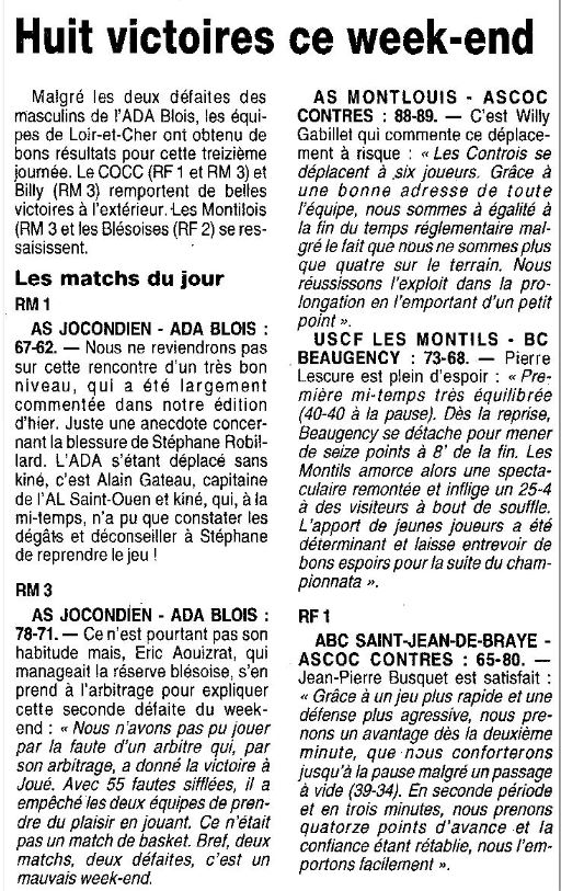 Saison 1995-1996 : En Championnat Régionale Masculine 1, Joué les Tours bat l’ADA Blois »