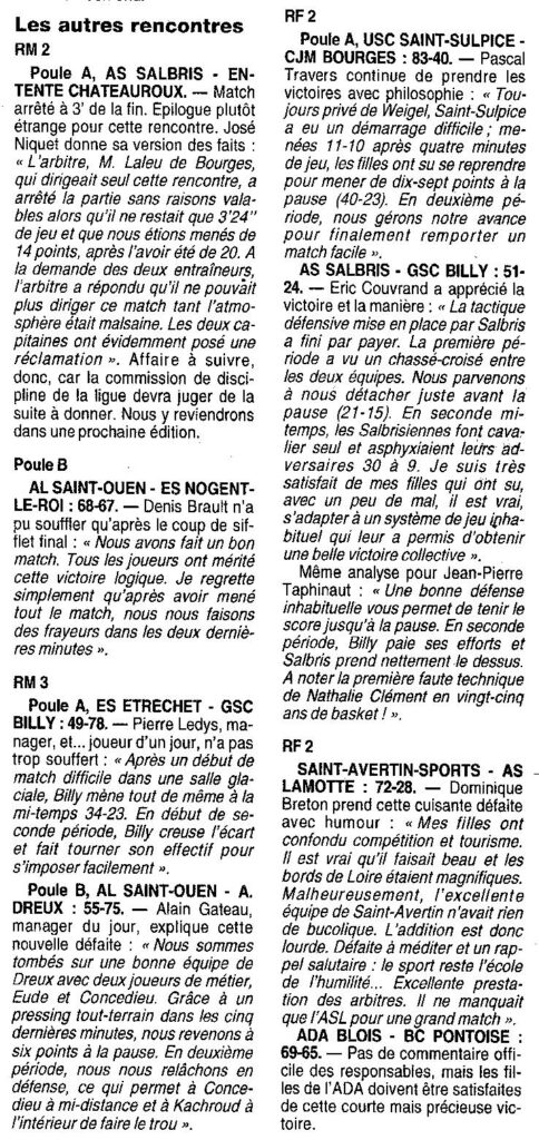 « Saison 1995-1996 : Les Potins de la Ligue du Centre