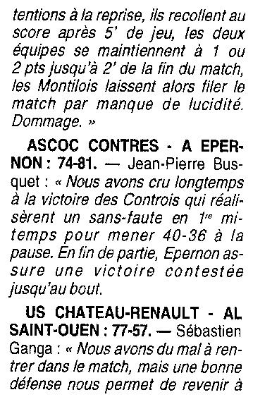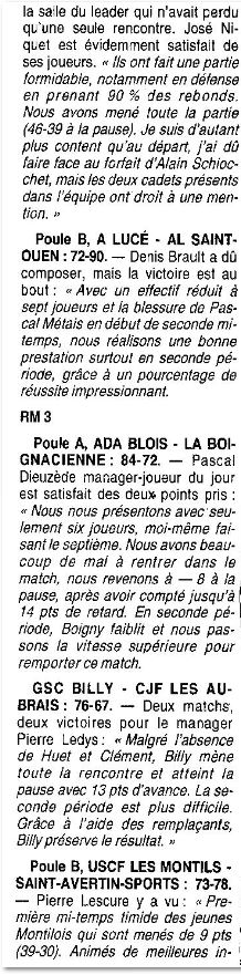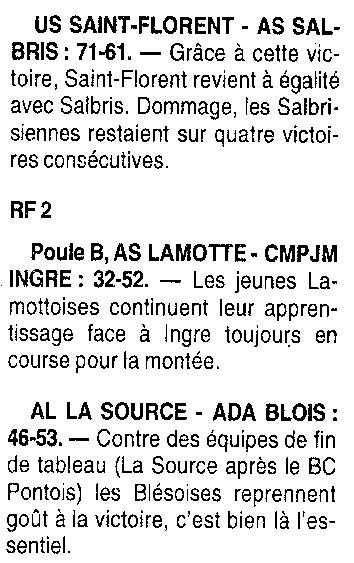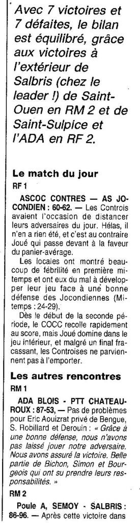 Saison 1995-1996 : Résultats de la 14ème Journée des équipes du Loir et Cher dans les Championnats Régionaux