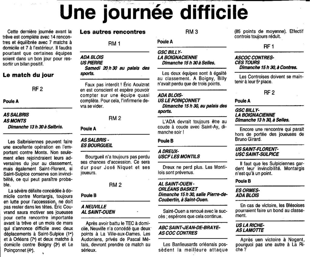 « Saison 1995-1996 : Résultats de la 17ème Journée des équipes du Loir et Cher dans les Championnats Régionaux