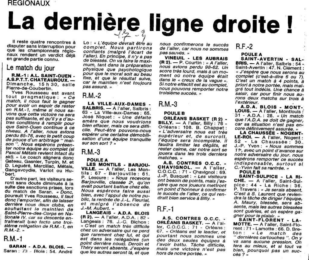 Saison 1995-1996 : Programme de la 19ème Journée des équipes du Loir et Cher dans les Championnats Régionaux