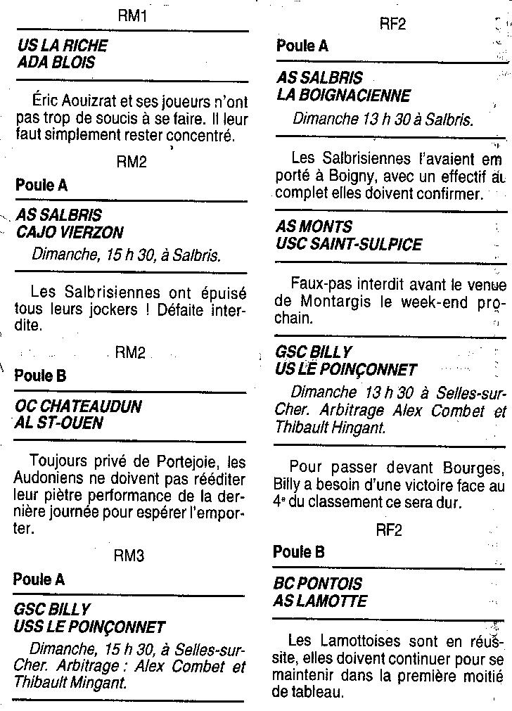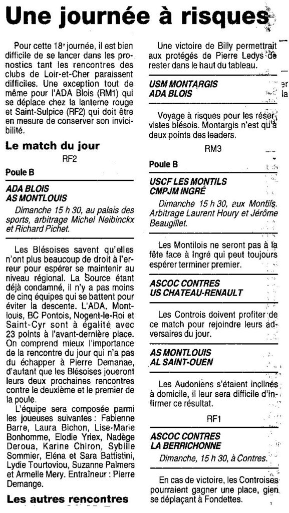 Saison 1995-1996 : Programme de la 18ème Journée des équipes du Loir et Cher dans les Championnats Régionaux
