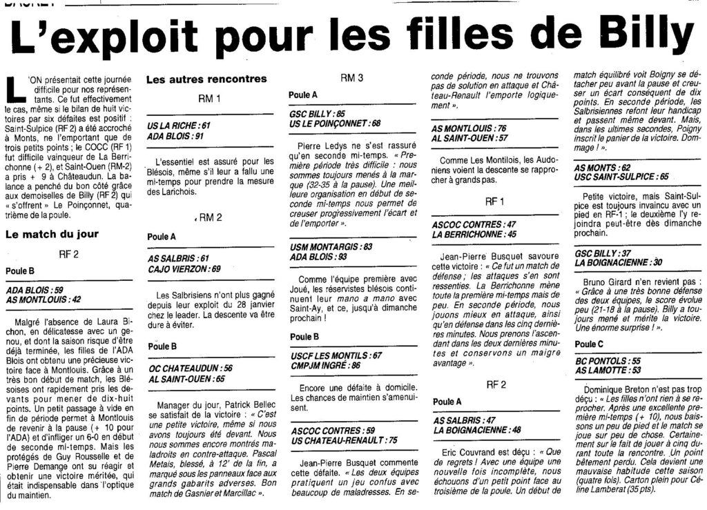 Saison 1995-1996 : En Championnat Régionale Masculine 1, l’ADA Blois bat l’US La Riche »