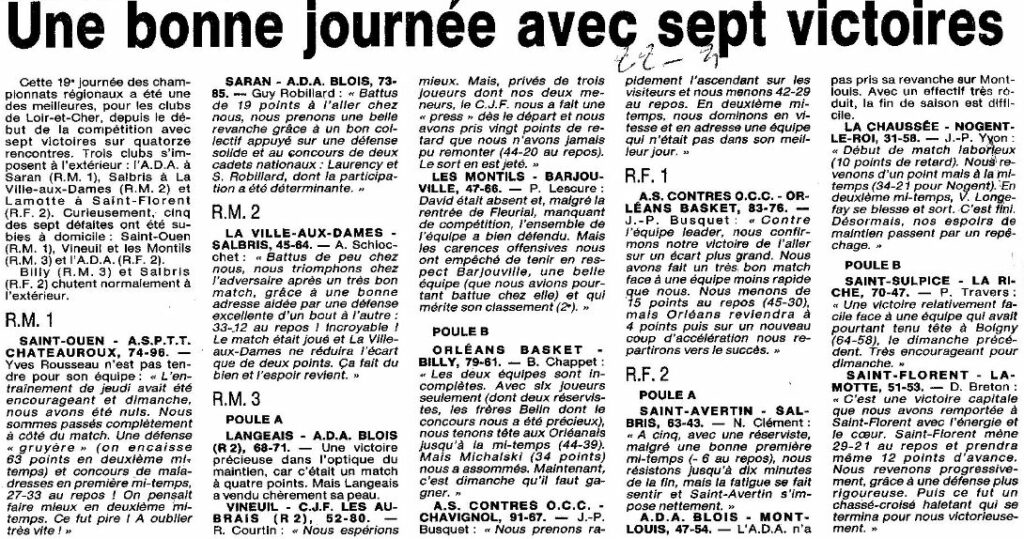Saison 1995-1996 : Résultats de la 19ème Journée des équipes du Loir et Cher dans les Championnats Régionaux