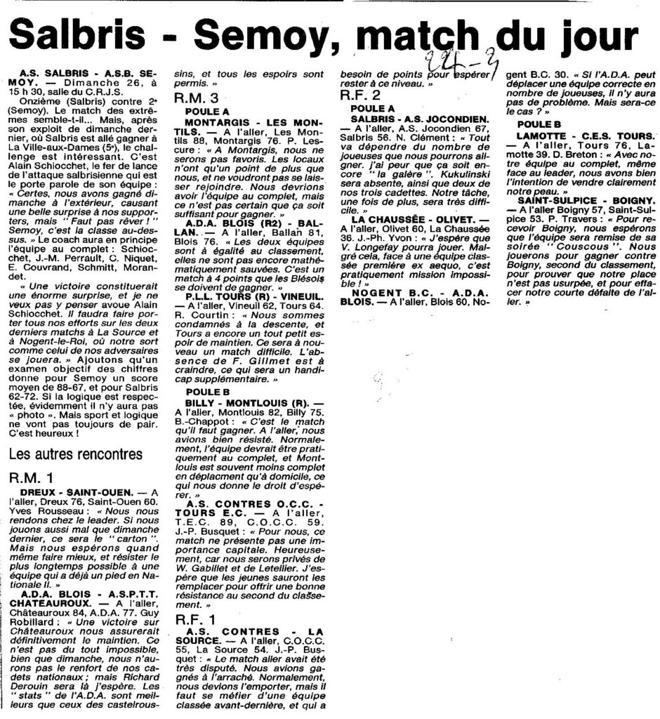 Saison 1995-1996 : Programme de la 20ème Journée des équipes du Loir et Cher dans les Championnats Régionaux