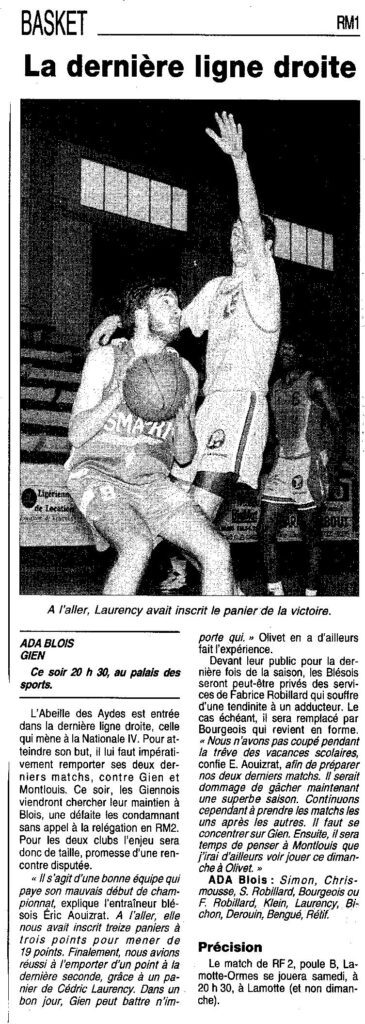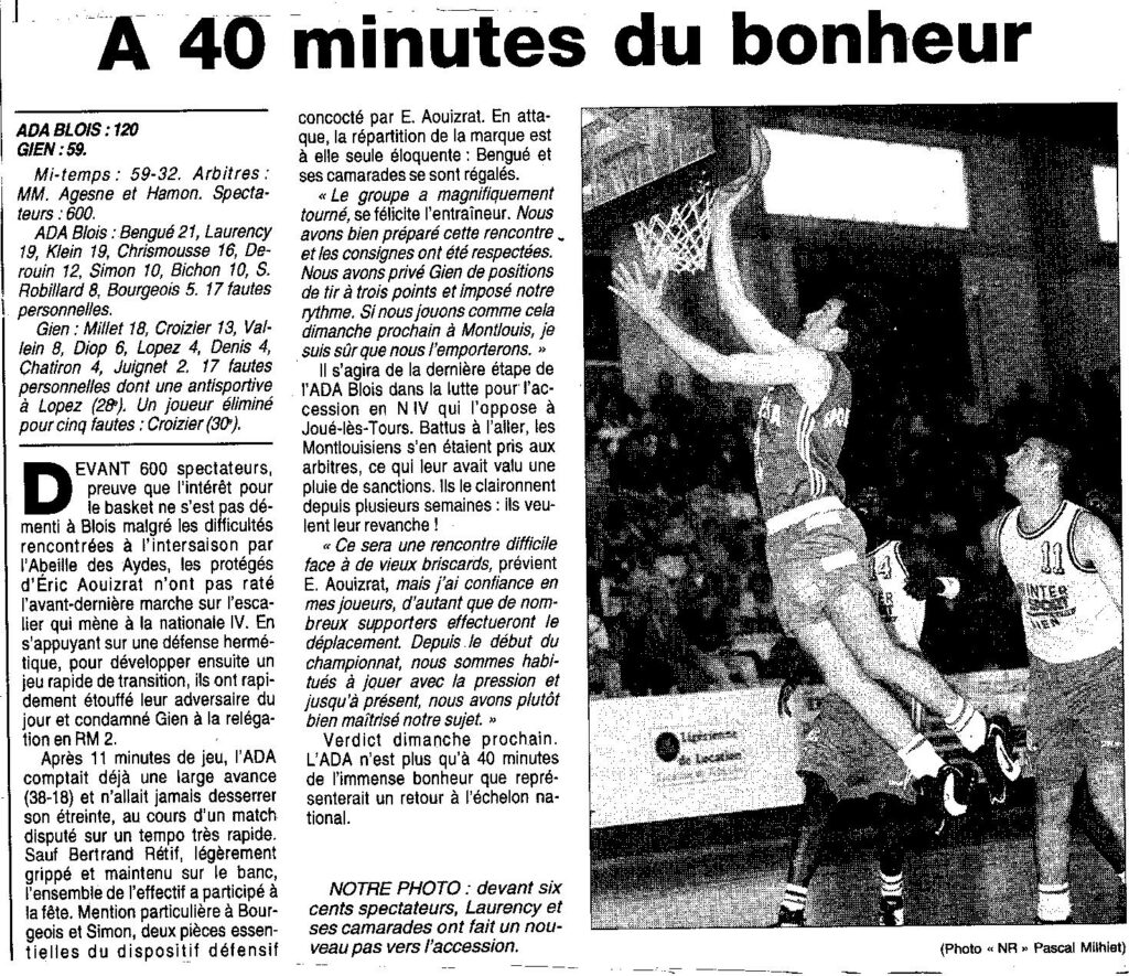 Saison 1995-1996 : En Régionale Masculine 1, l’ADA Blois écrase l’Abeille de Gien