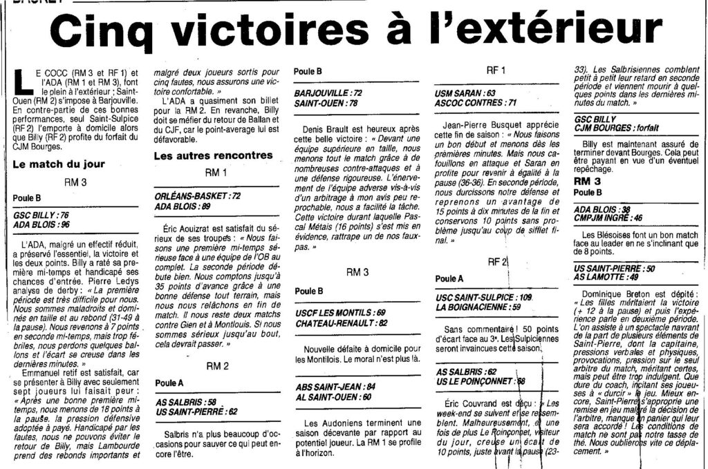 Saison 1995-1996 : Résultats de la 21ème Journée des équipes du Loir et Cher dans les Championnats Régionaux