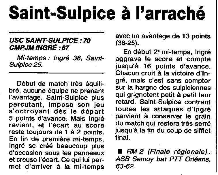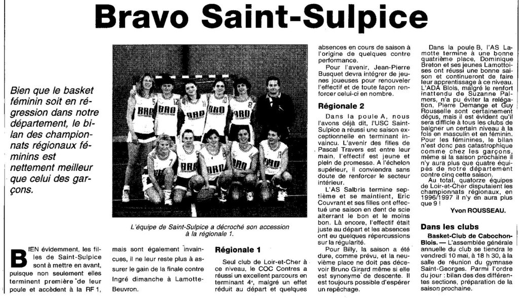 Saison 1995-1996 : Les Féminines de Saint Sulpice Championnes en Régionale 2.