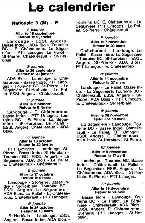 Saison 1998-1999 : Calendrier de la Nationale Masculine 3 poule (E)