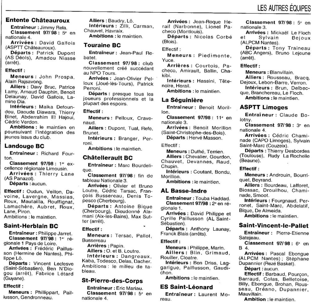Saison 1998-1999 : Composition des équipes de la poule de Nationale Masculine 4 de l’ADA Blois