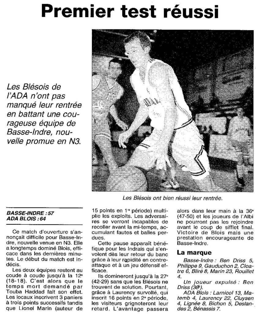 Saison 1998-1999 : Pour sa première sortie, l’ADA Blois s’impose à Basse Indre