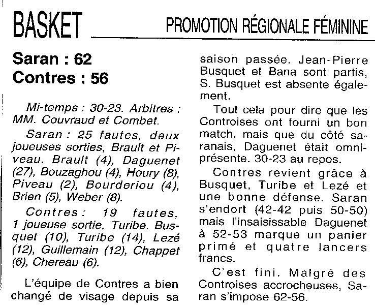 Saison 1998-1999 : En Championnat de Promotion Régionale Féminine, Saran bat Contres