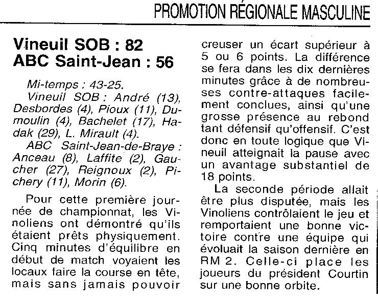 Saison 1998-1999 : En Championnat de Promotion Régionale Masculine, Vineuil s’impose face à l’ABC St Jean de Braye