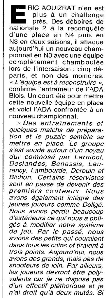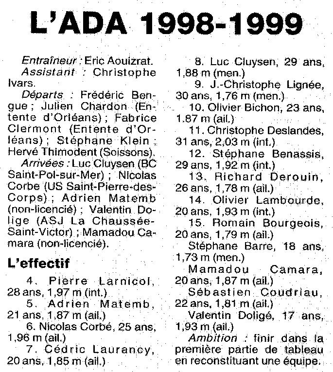 Saison 1998-1999 : Pour l’ADA Blois « Plongeon dans l’inconnu »
