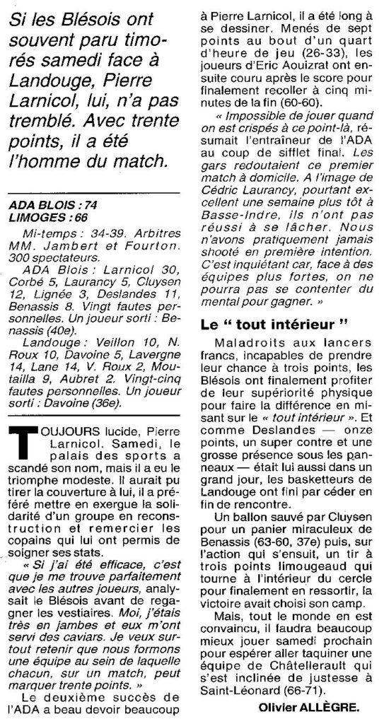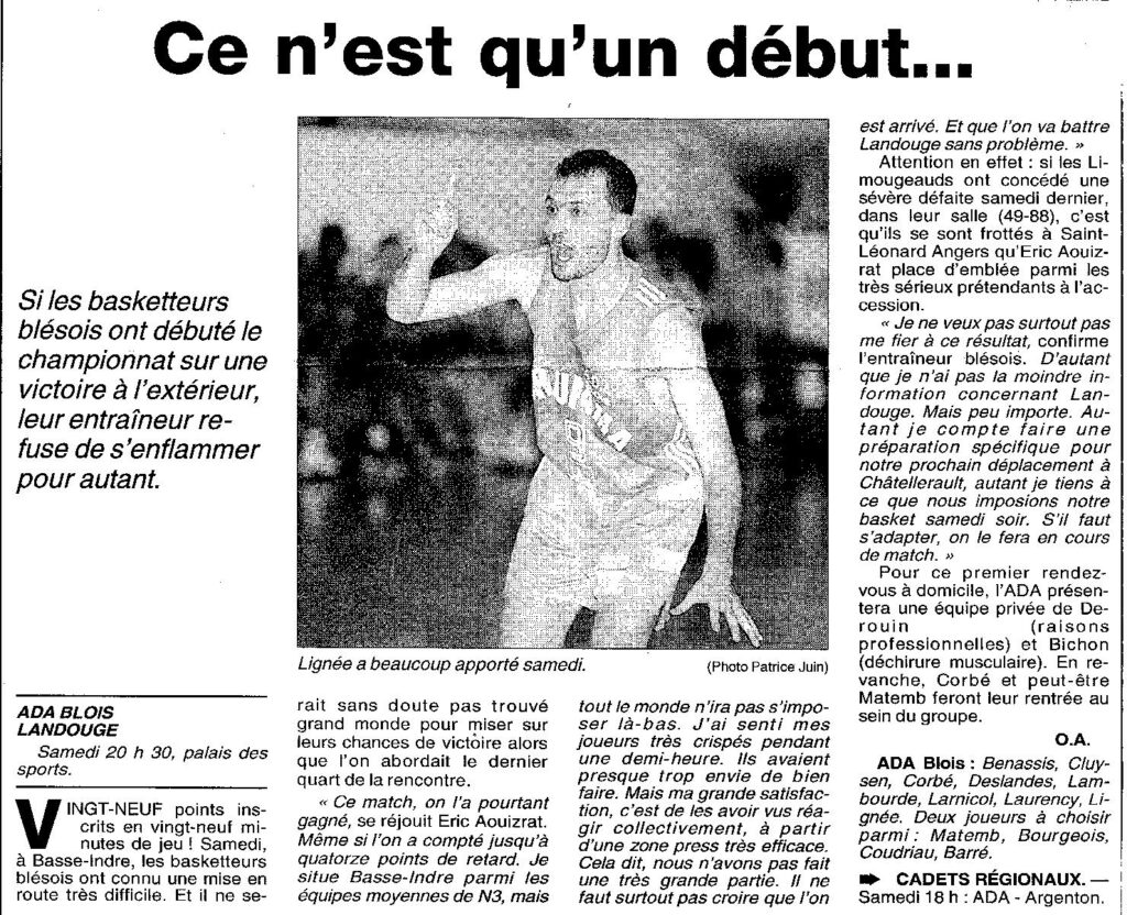 Saison 1998-1999 : En Championnat de France Nationale Masculine 3, l’ADA Blois bat Landouge