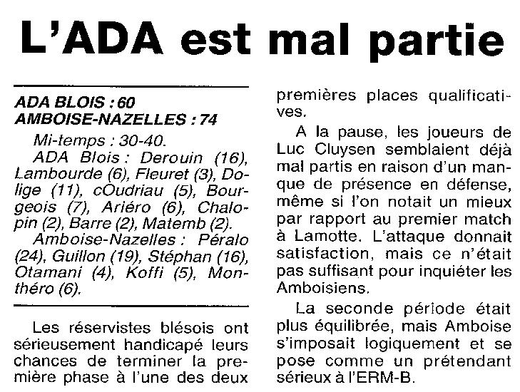 Saison 1998-1999 : En Championnat d’Excellence Régionale Masculine 2, Amboise-Nazelles bat l’ADA Blois