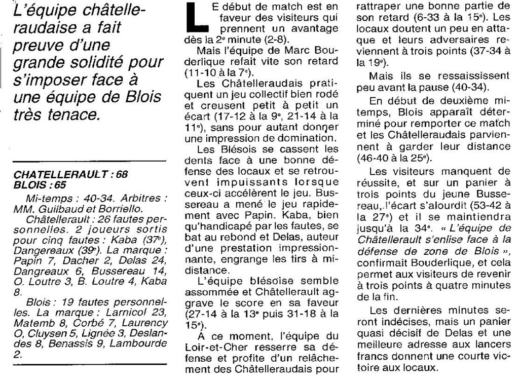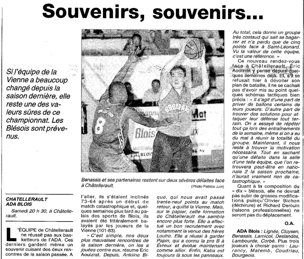 Saison 1998-1999 : En Nationale Masculine 3, l’ADA Blois s’incline à Châtellerault