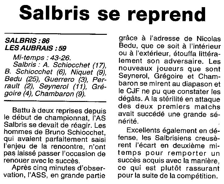 Saison 1998-1999 : En Championnat de Promotion d’Excellence Régionale, Salbris bat le CJF Les Aubrais