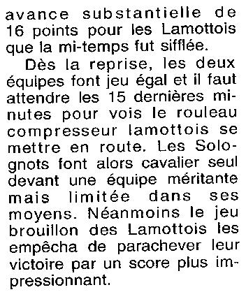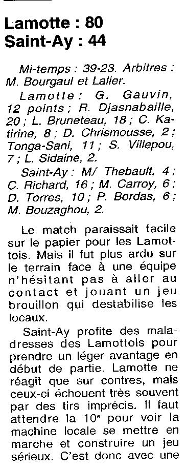Saison 1998-1999 : En Championnat d’Excellence Régionale Masculine 2, Lamotte Beuvron bat Saint Ay