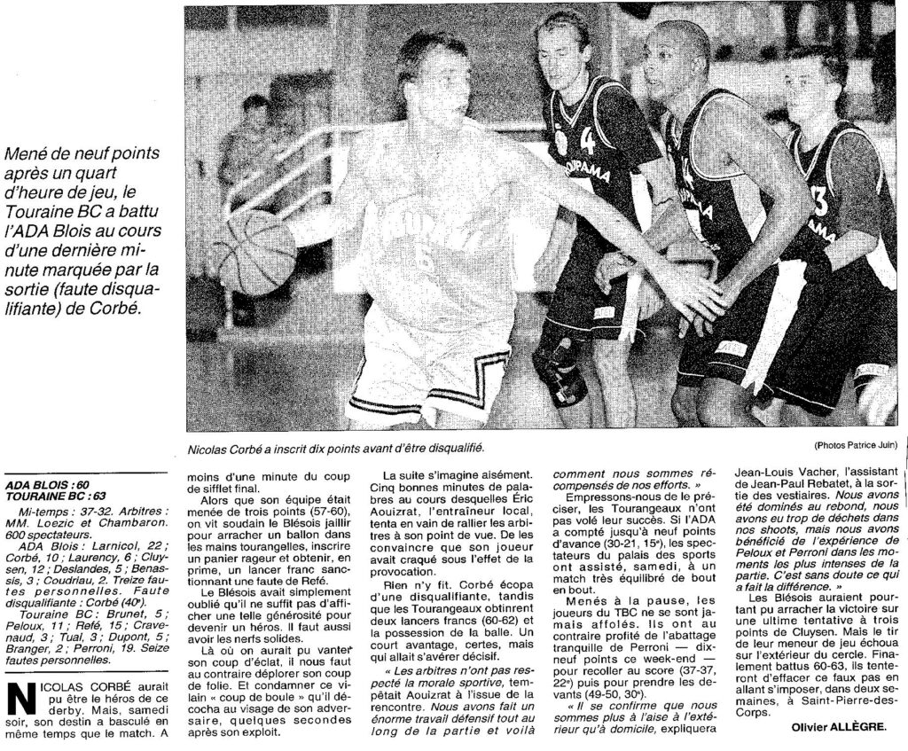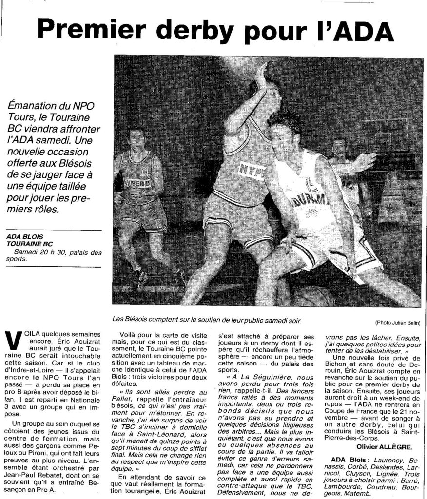 Saison 1998-1999 : En Championnat de Nationale Masculine 3, l’ADA s’incline face au Touraine BC