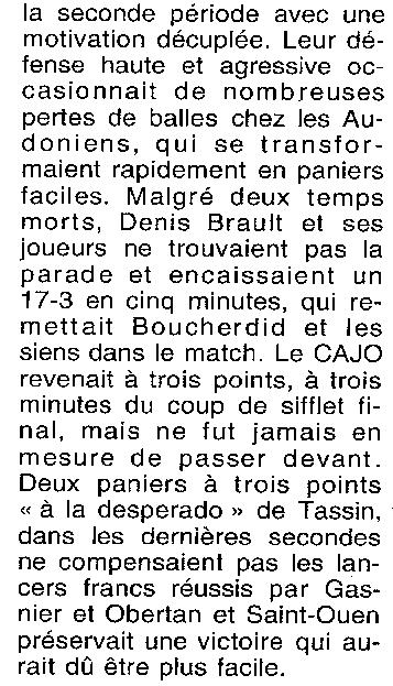 Saison 1998-1999 : En Championnat d’Excellence Masculine 2, AL St Ouen bat CAJO Vierzon