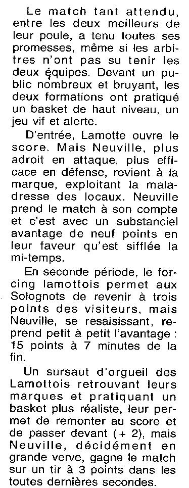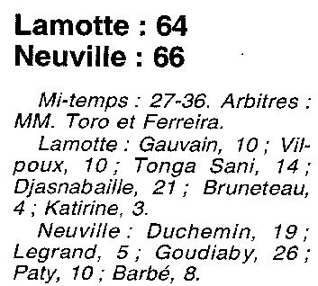 Saison 1998-1999 : En Championnat d’Excellence Masculine 2, Neuville aux Bois bat Lamotte Beuvron