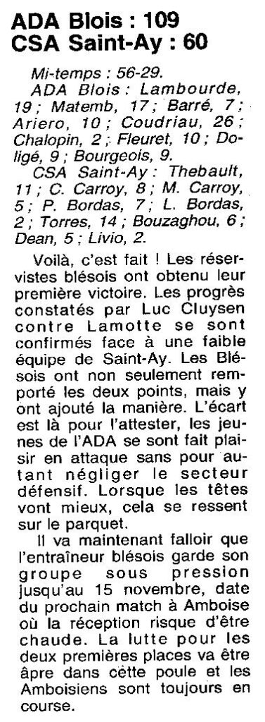 Saison 1998-1999 : En Championnat d’Excellence Régionale Masculine 2, l’ADA Blois bat le CSA Saint-Ay