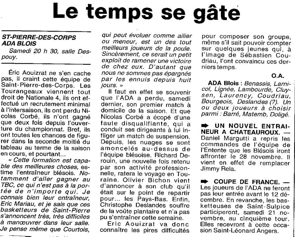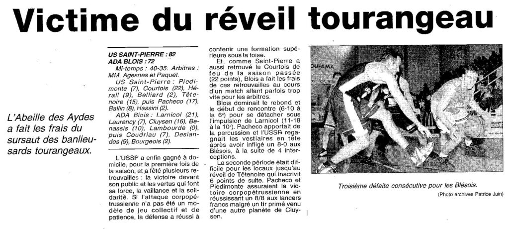 Saison 1998-1999 : En Championnat de Nationale Masculine 3, l’ADA Blois s’incline face à Saint Pierre des Corps