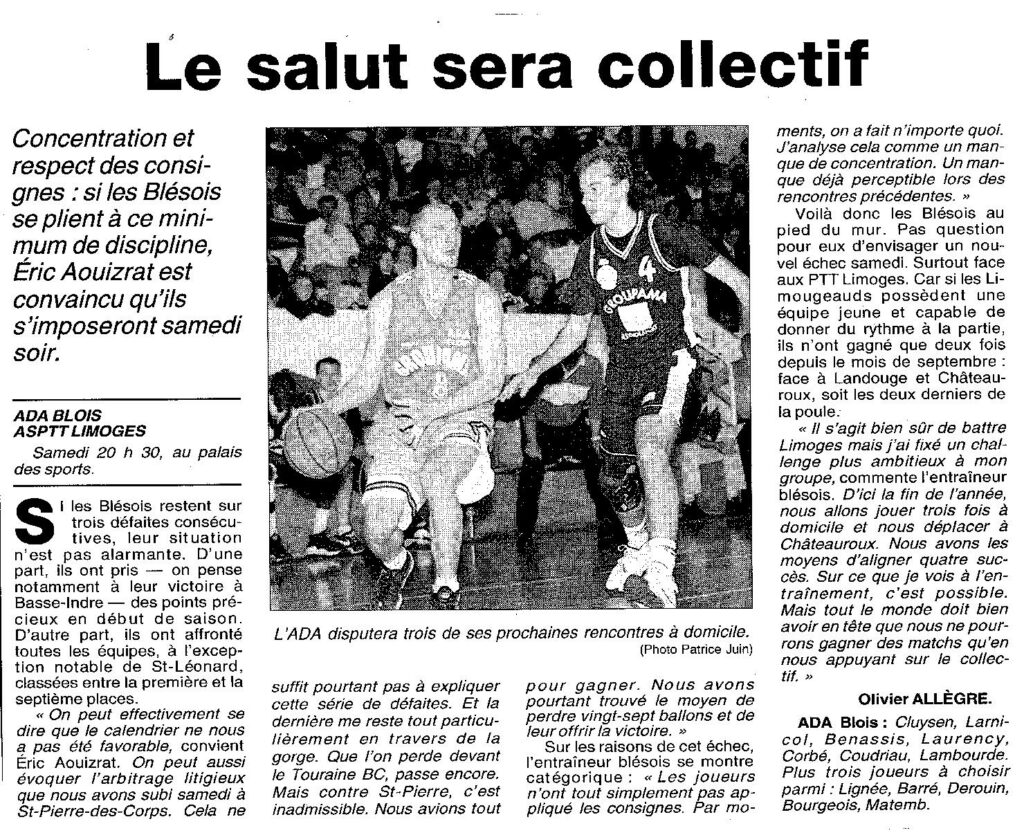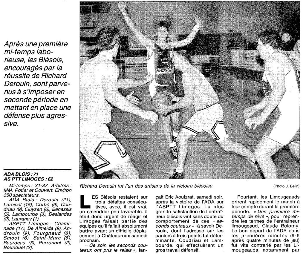 Saison 1998-1999 : En Championnat de Nationale Masculine 3, l’ADA Blois s’impose face à l’ASPTT de Limoges