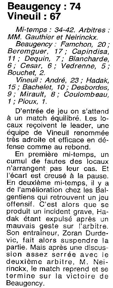 Saison 1998-1999 : En Championnat de Promotion d’Excellence Régionale Masculine, Beaugency bat Vineuil