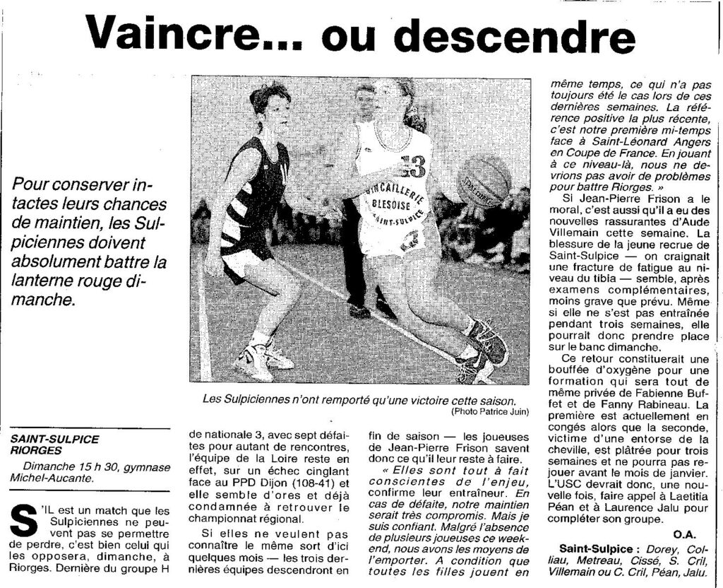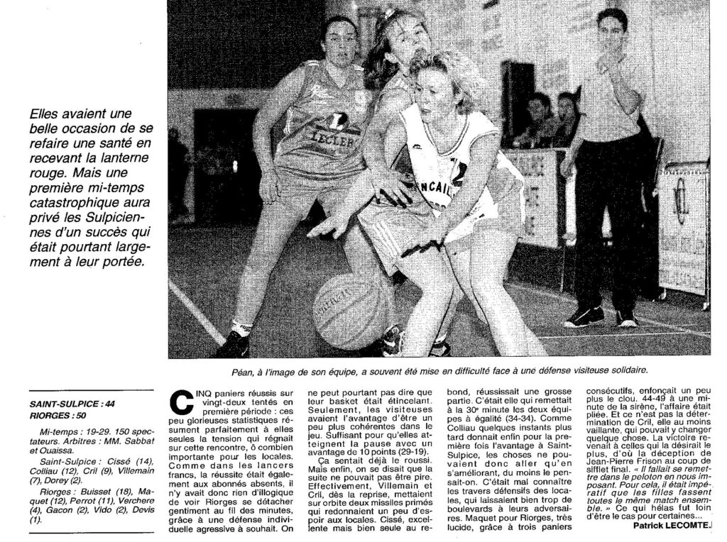 Saison 1998-1999 : En Championnat de Nationale Féminine 3, Saint Sulpice s’incline face à Riorges