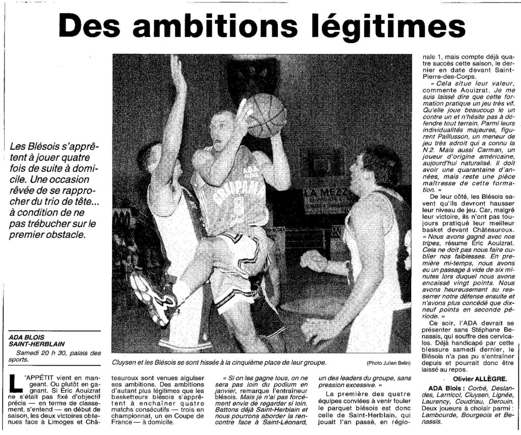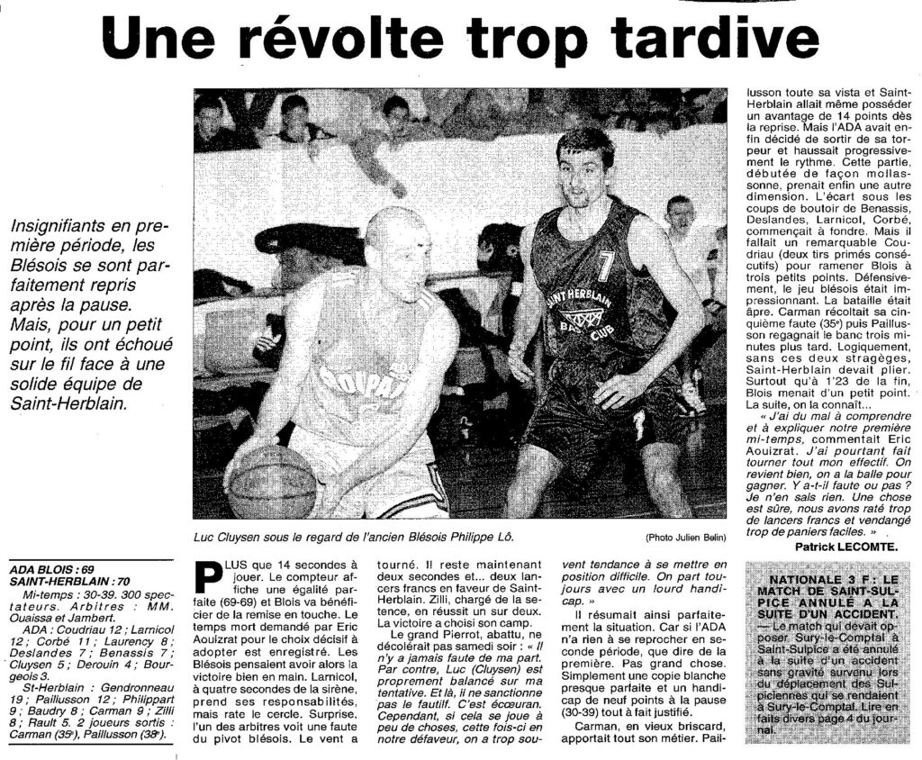 Saison 1998-1999 : En Championnat de Nationale Masculine 3, Saint Herblain bat l’ADA Blois