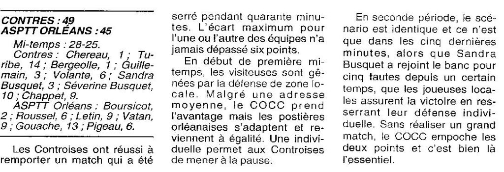 Saison 1998-1999 : En Championnat de Promotion Régionale Féminine, Contres bat ASPTT Orléans