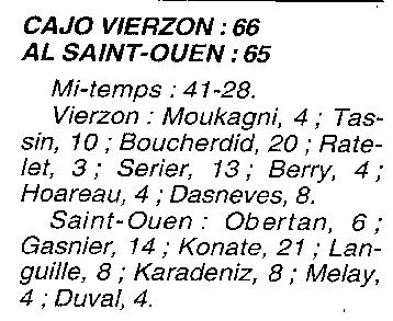 Saison 1998-1999 : En Championnat d’Excellence Régionale Masculine 2, le CAJO de Vierzon bat l’AL St Ouen