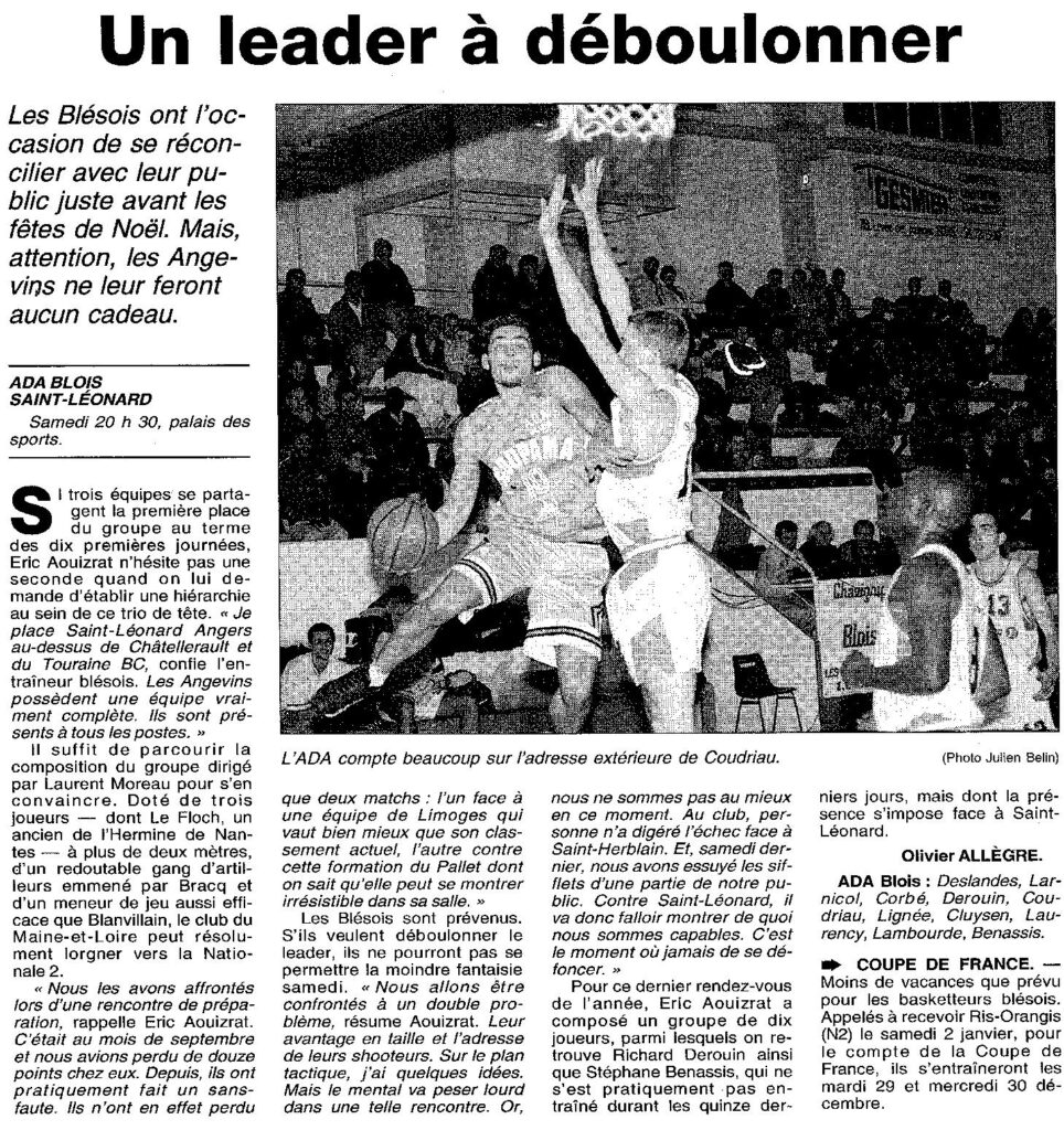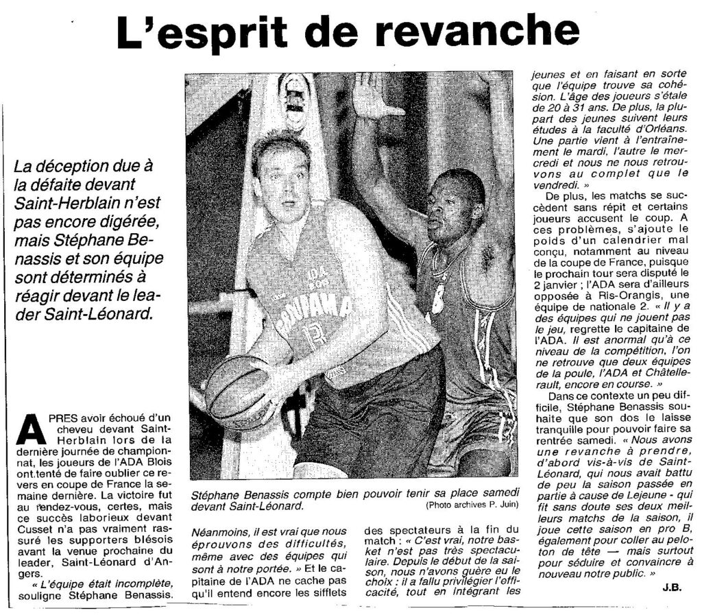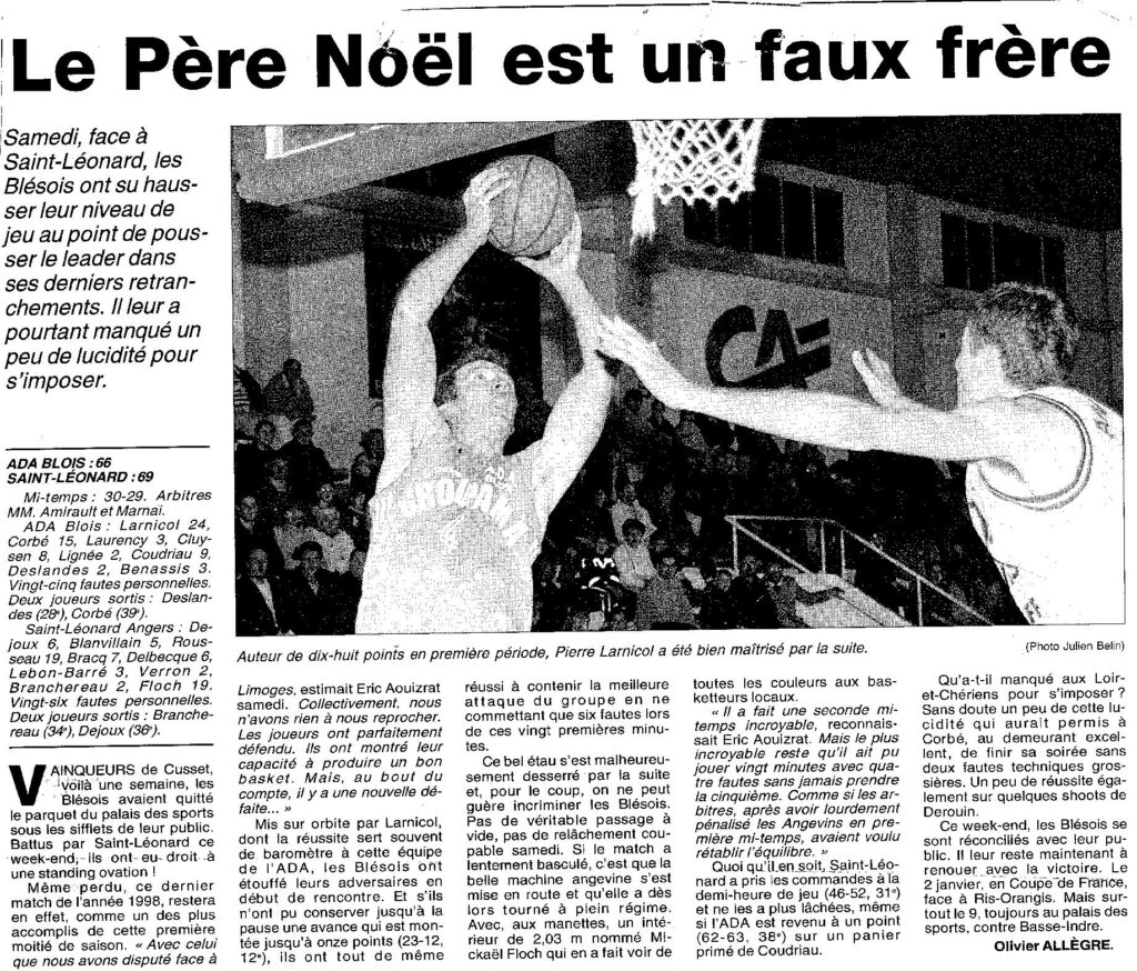 Saison 1998-1999 : En championnat de Nationale Masculine 3, l’ADA Blois s’incline face au leader l’ESSL Angers