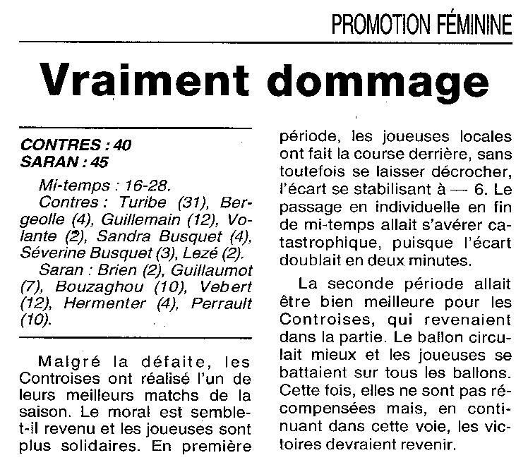 Saison 1998-1999 : En Championnat de Promotion d’Excellence Féminine, Saran bat Contres