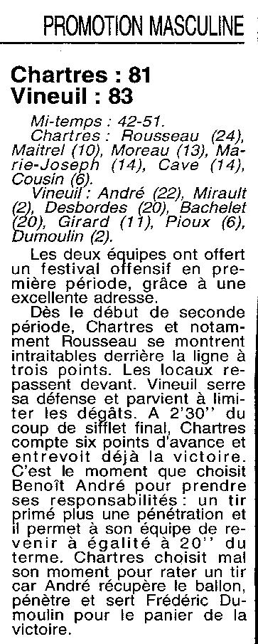 Saison 1998-1999 : En Championnat de Promotion d’Excellence Régionale Masculine, Vineuil bat Chartres