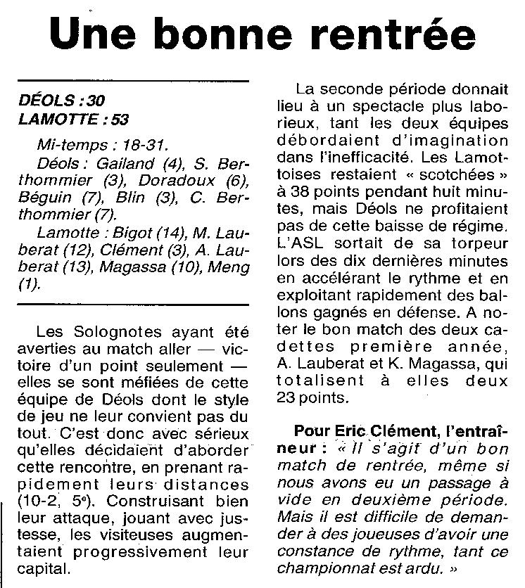 Saison 1998-1999 : En Championnat de Promotion d’Excellence Régionale Féminine, Lamotte Beuvron bat Déols