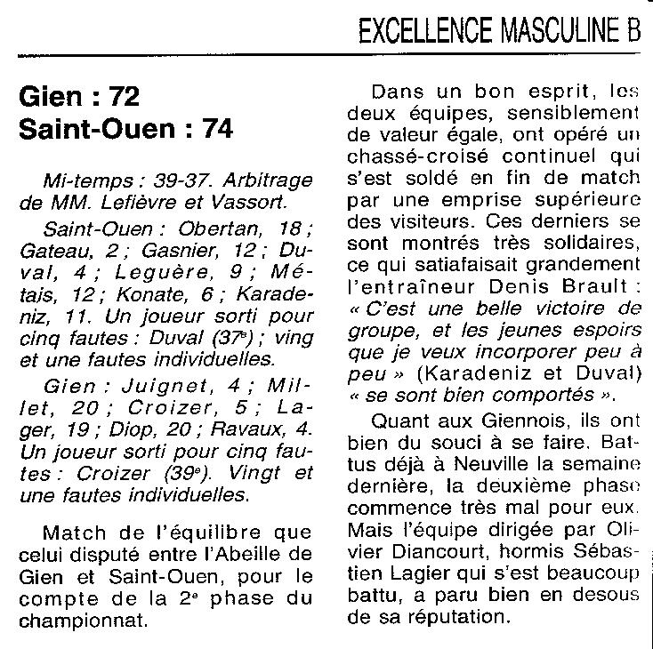 Saison 1998-1999 : En Championnat d’Excellence Régionale Masculine B, Saint-Ouen bat Gien