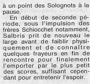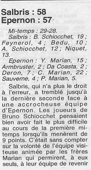 Saison 1998-1999 : En Promotion d’Excellence Régionale Masculine, Salbris bat Epernon