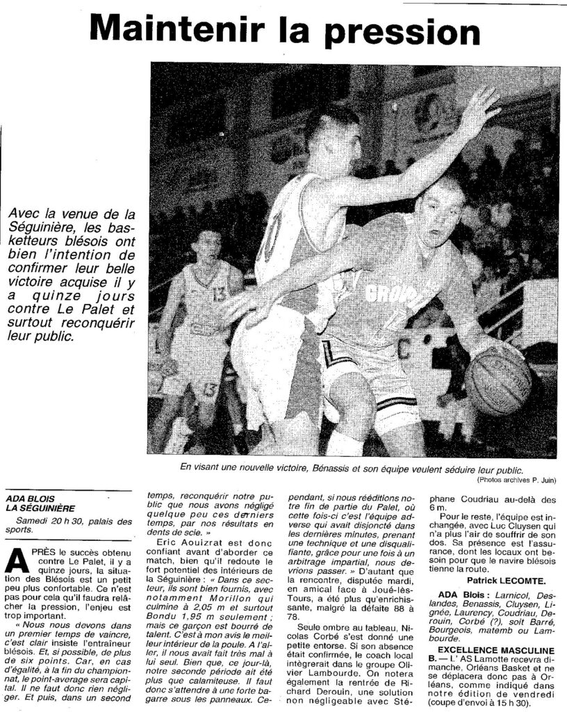 Saison 1998-1999 : En Championnat de Nationale Masculine 3, l’ADA Blois bat La Séguinière